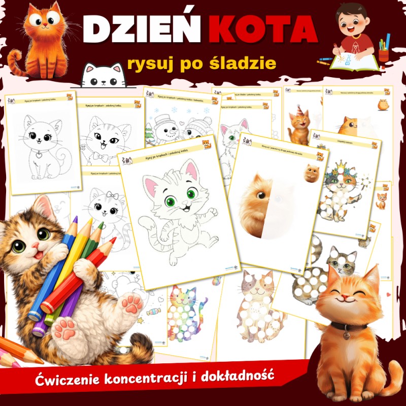 Zestaw "Rysuj po śladzie" to wyjątkowy zbiór 80 kart pracy, stworzonych specjalnie dla dzieci w wieku przedszkolnym. Każda karta zawiera kolorowe elementy o tematyce bliskiej maluchom, takie jak rodzina, emocje, różnorodne zawody, a także pory roku – jesień i zimę. Zestaw ten nie tylko bawi, ale również wspiera rozwój kluczowych umiejętności, takich jak koordynacja wzrokowo-ruchowa oraz sprawność grafomotoryczna. Dzięki temu dzieci uczą się precyzyjnie rysować po śladzie, co przygotowuje je do nauki pisania w późniejszych latach. "Rysuj po śladzie" to idealne narzędzie do rozwoju dziecka poprzez zabawę!